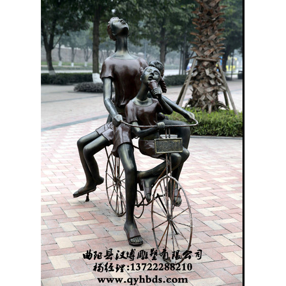 玻璃钢骑自行车抽象人物雕塑_铸铜人物雕塑商业街摆件