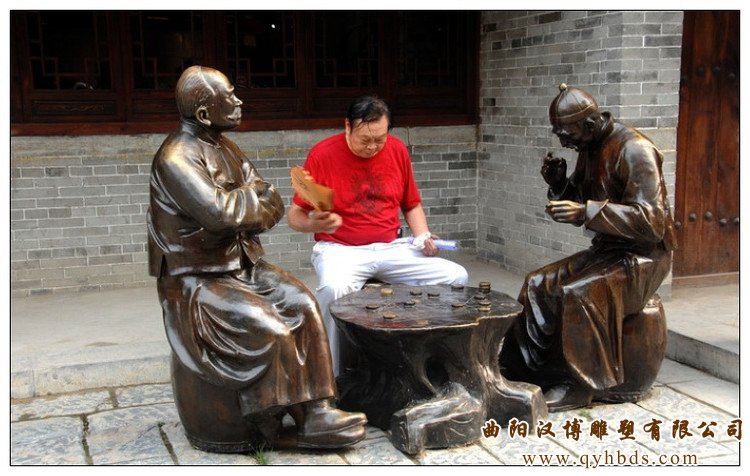 玻璃钢仿铜雕塑-下棋人物雕塑厂家-广场园林雕塑