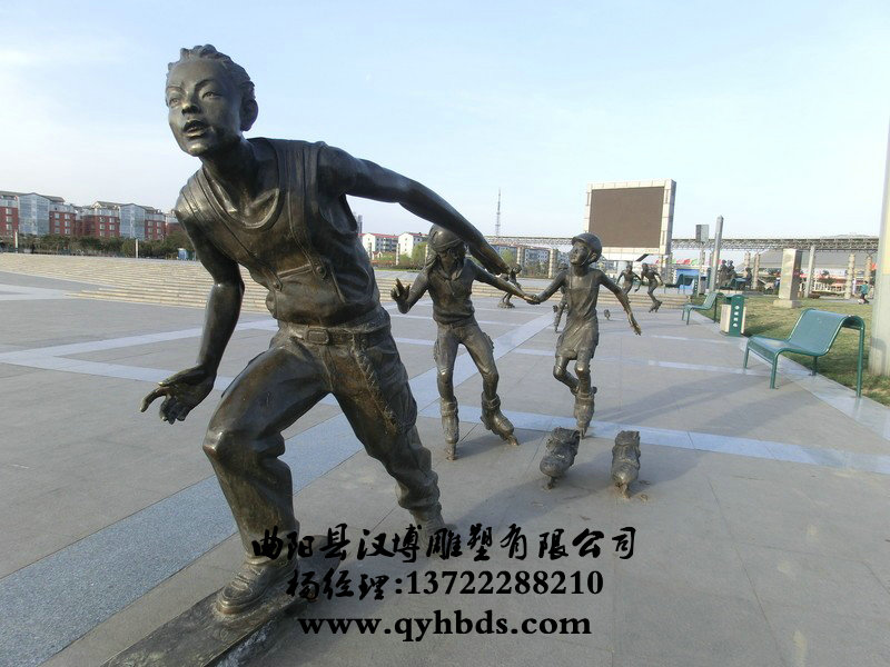玻璃钢仿铜雕塑-小孩广场滑旱冰雕塑厂家-人物雕塑价格