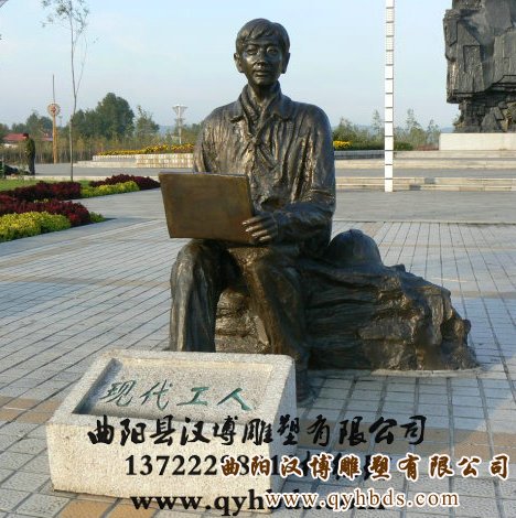 打电脑广场城市雕塑-人物雕塑厂家-玻璃钢仿铜雕塑价格