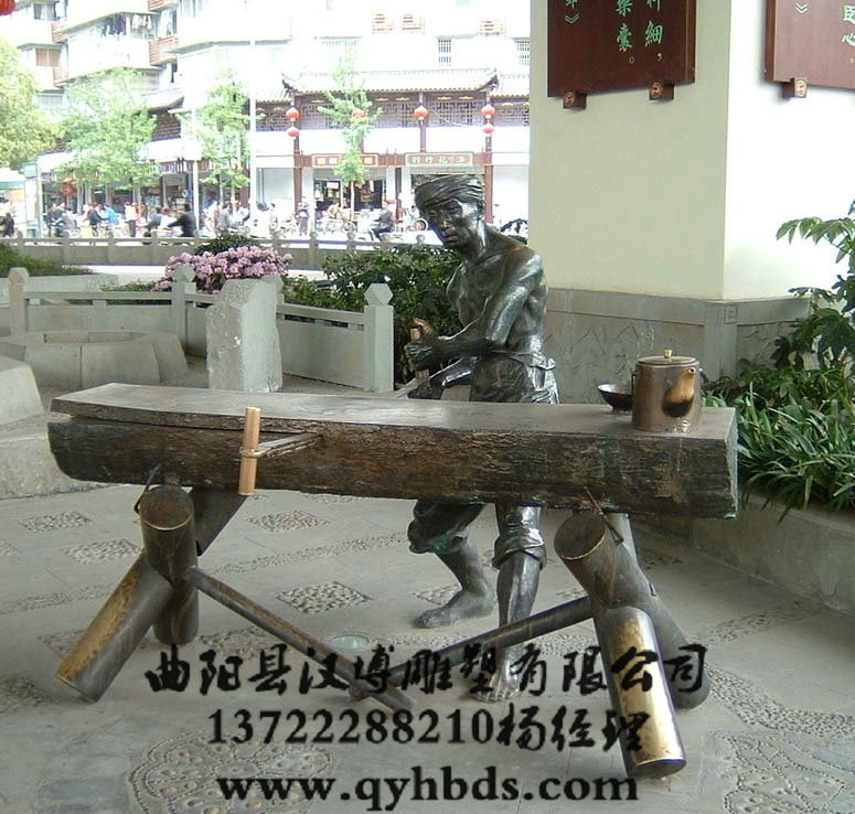 伐木工锯木头雕塑-玻璃钢仿铜雕塑价格-人物雕塑厂家