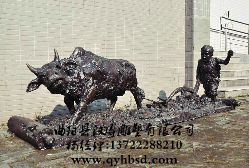 耕牛人物雕塑,玻璃钢户外景观雕塑