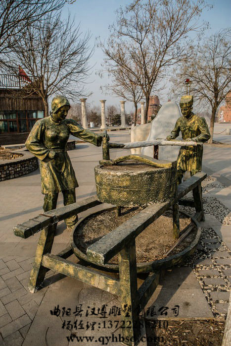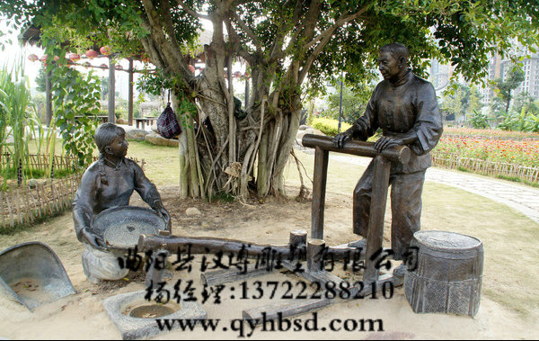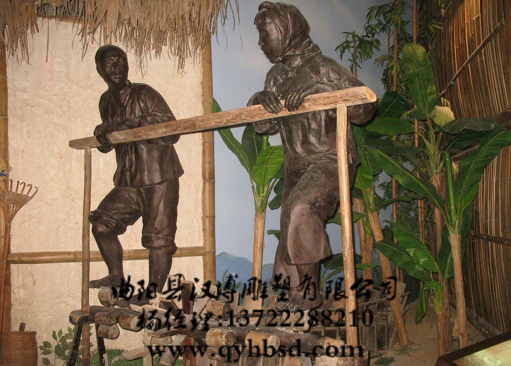 农家院博物馆摆件,玻璃钢农耕人物雕塑