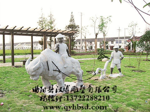 玻璃钢牧童骑牛雕塑,户外园林景观雕塑