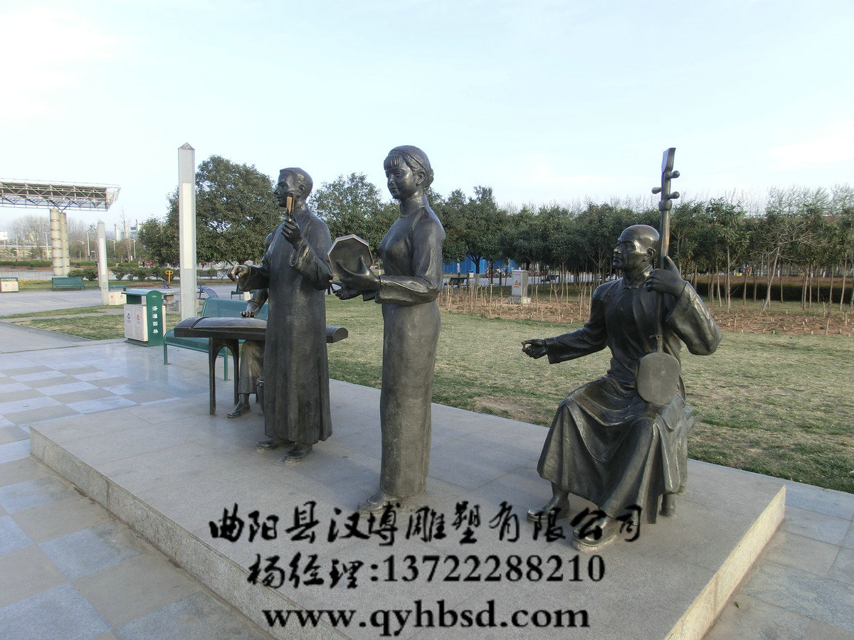 城市公园广场雕塑,玻璃钢唱大鼓书雕塑