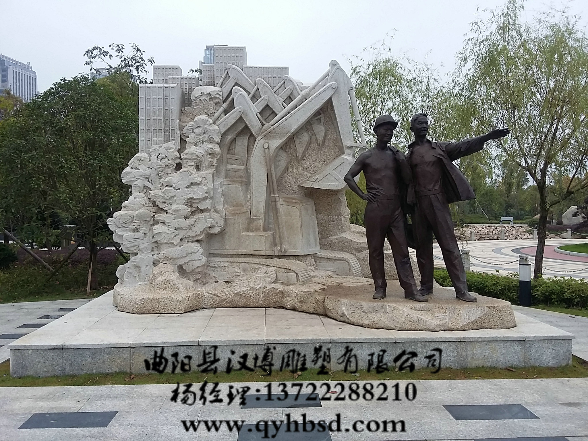 玻璃钢挖掘机雕像,园林景观工人雕塑