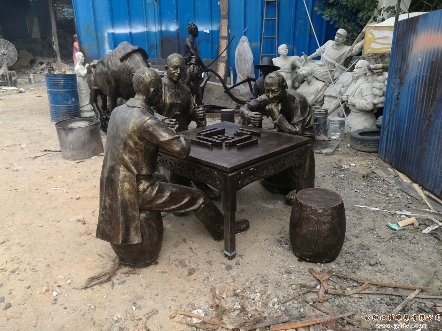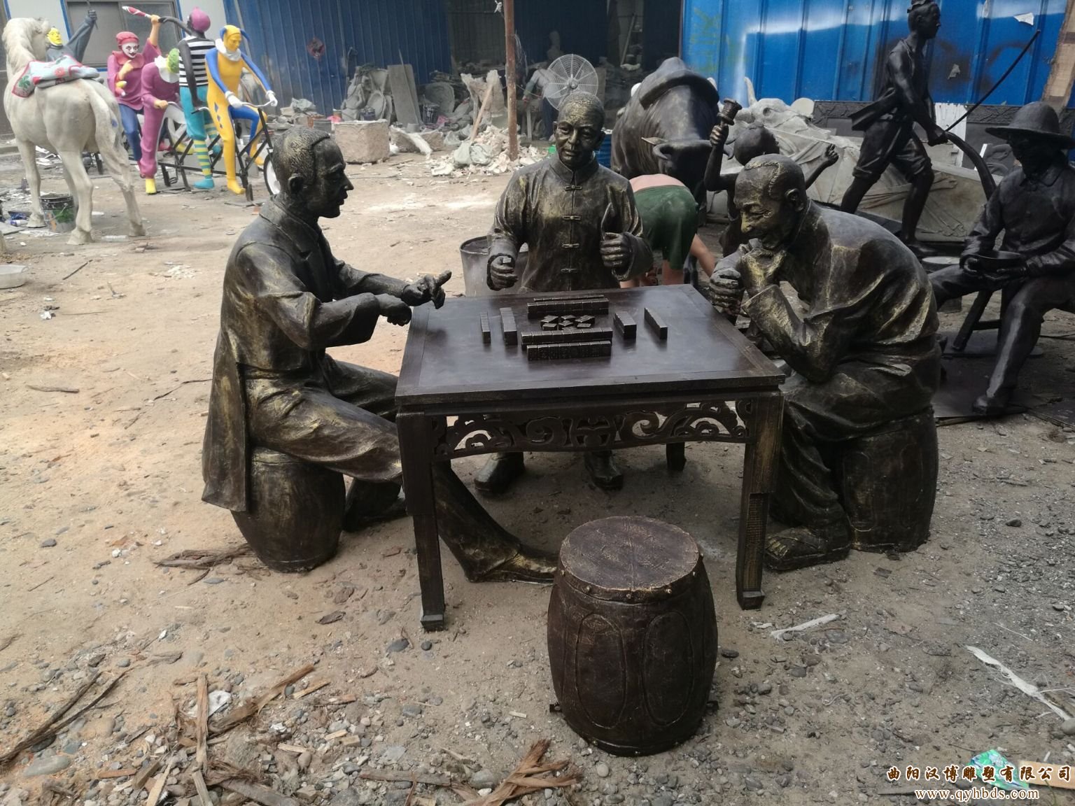广场打麻将人物雕塑