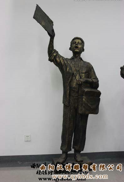 城市卖报纸儿童雕塑