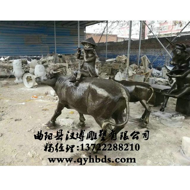 牧童骑黄牛雕塑-玻璃钢铸铜雕塑厂家-人物雕塑