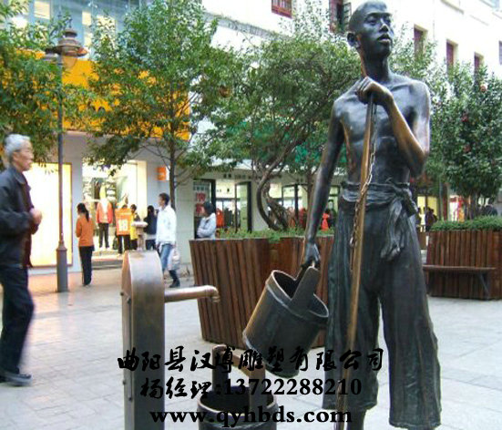 抬水人物雕塑,玻璃钢人物雕塑-ds295