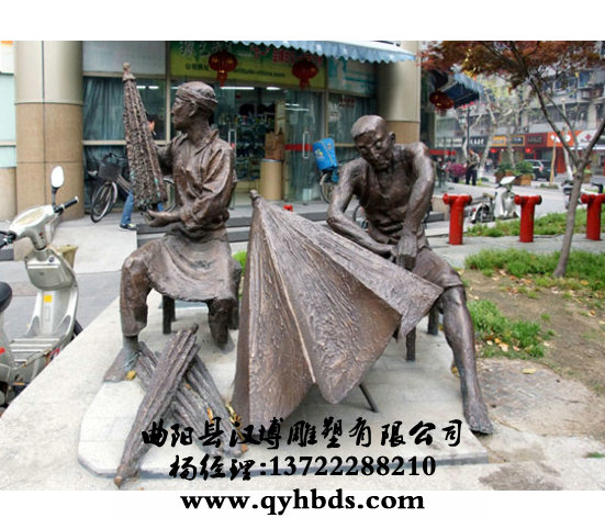 卖伞主题雕塑,玻璃钢小品雕塑,人物雕塑-ds413