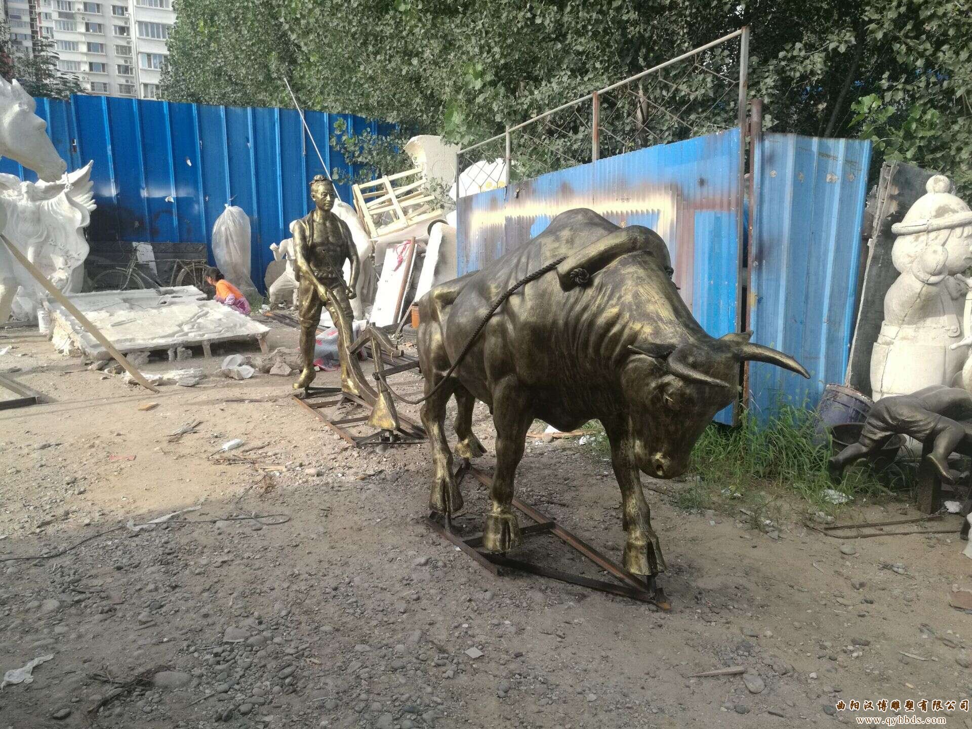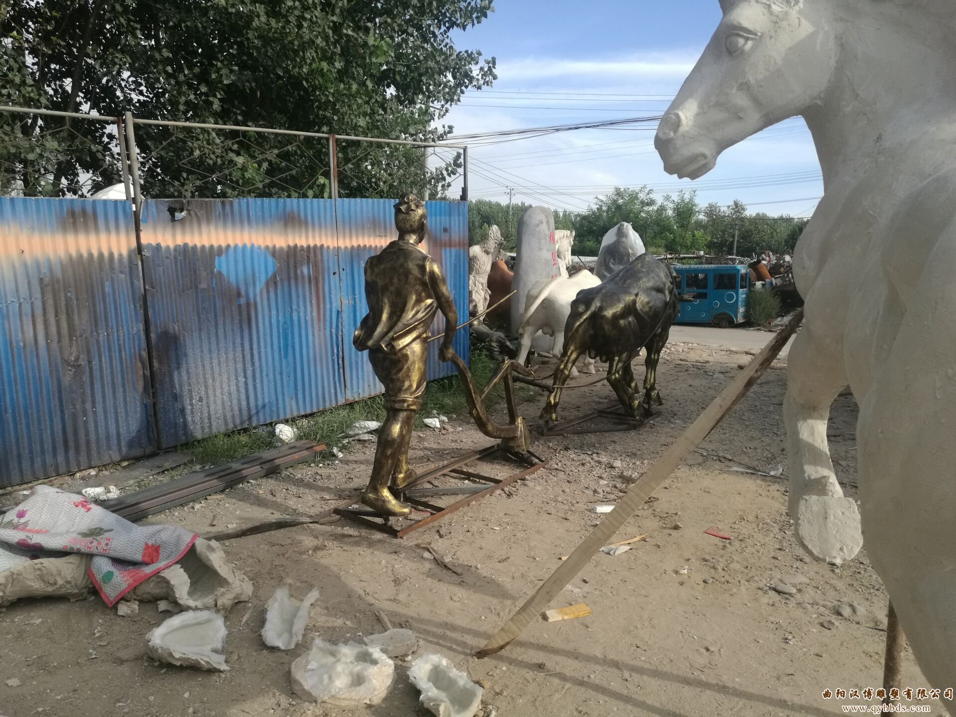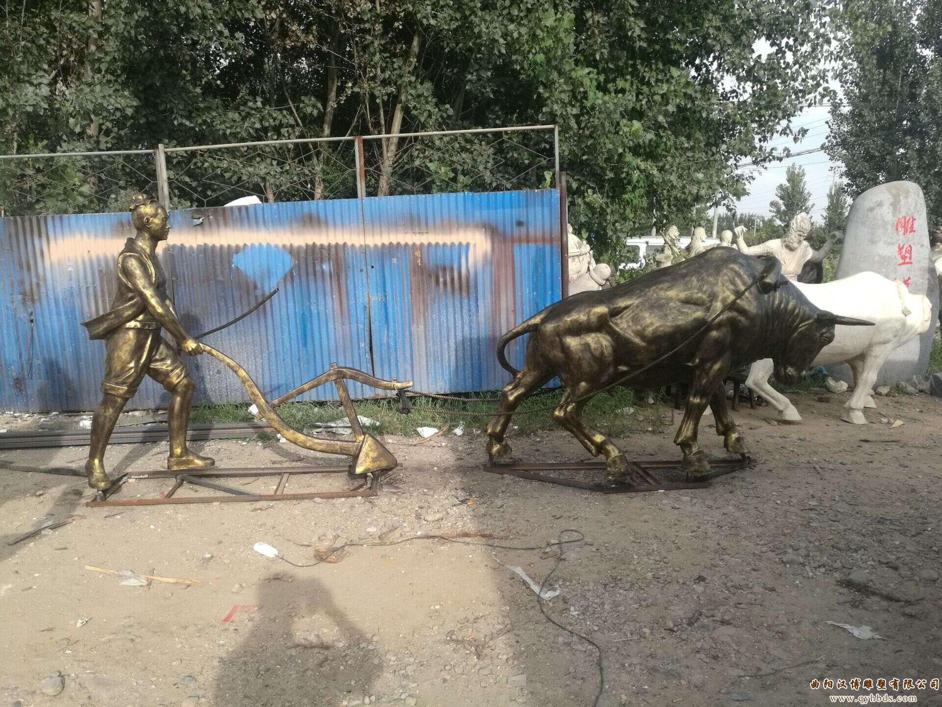 牛拉耕人物雕塑-城市文化雕塑-玻璃钢仿铜雕塑价格