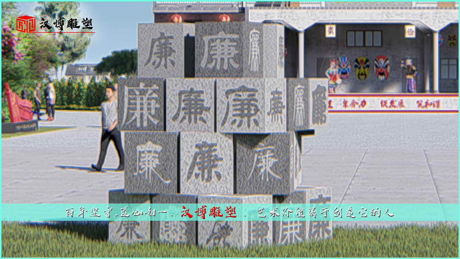 廉字石雕,石雕定制加工,园林主题石雕