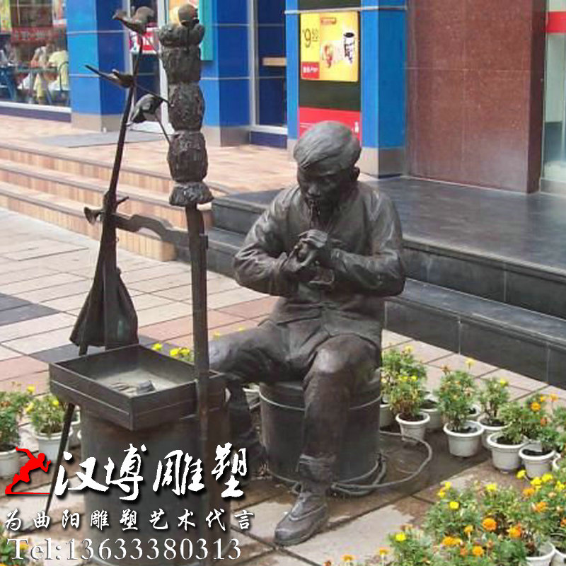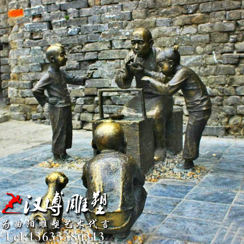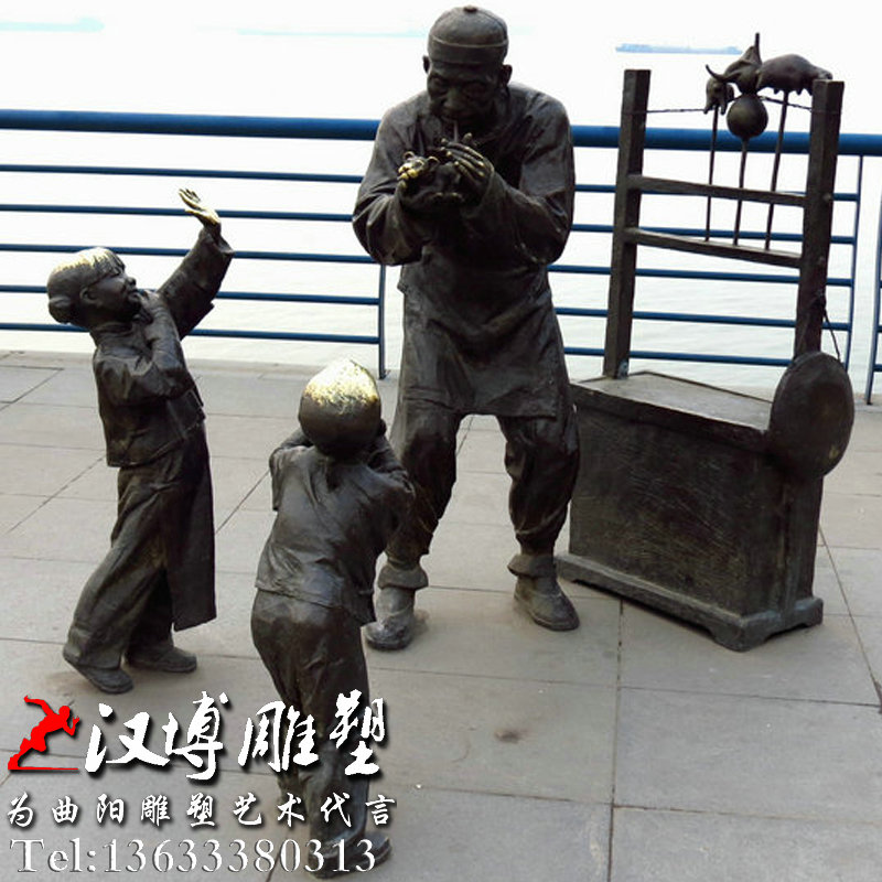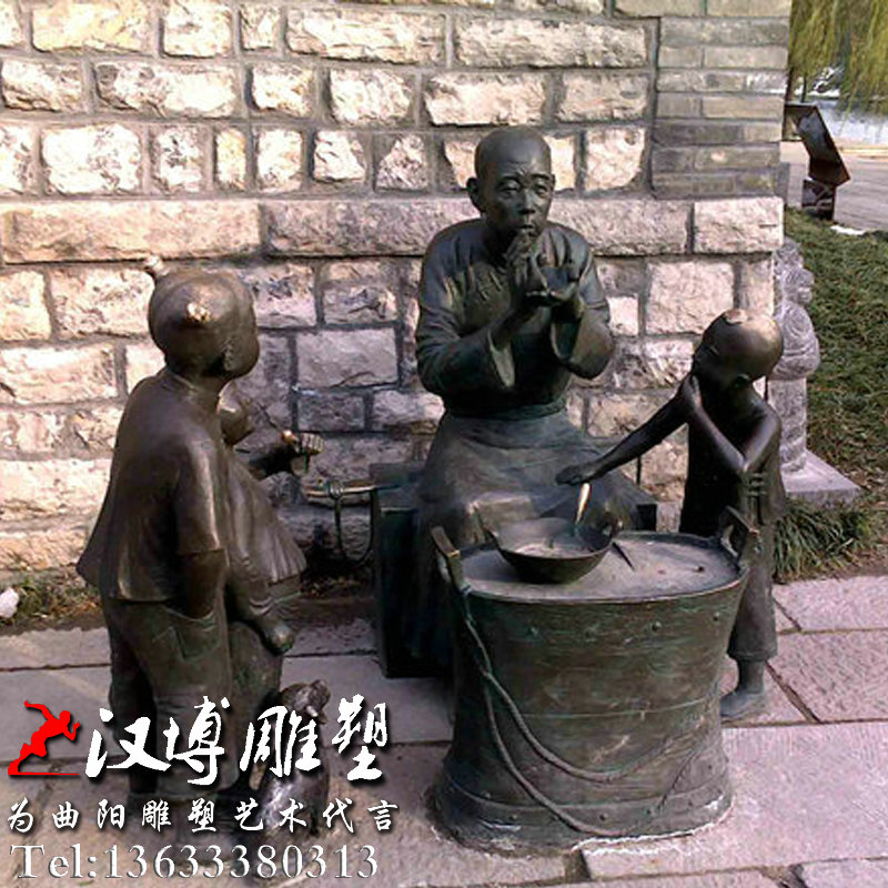 民俗小品雕塑,吹糖人雕像,商业街铜雕