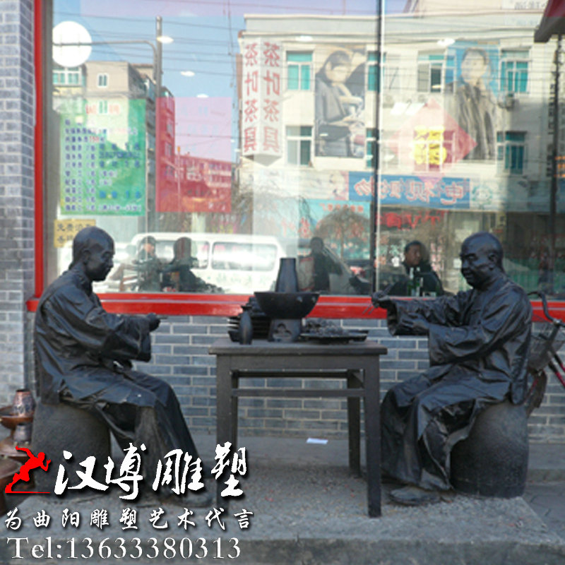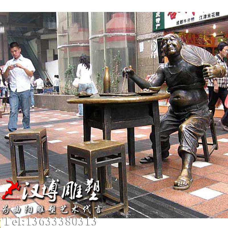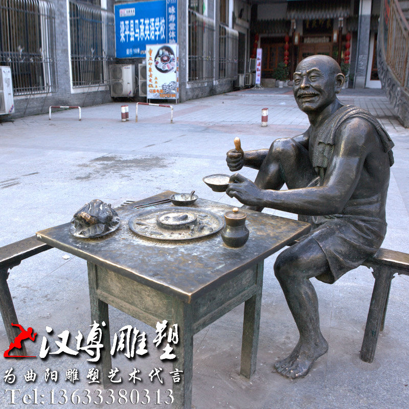 火锅店迎宾人雕塑,民俗小吃铜雕,商业街雕像