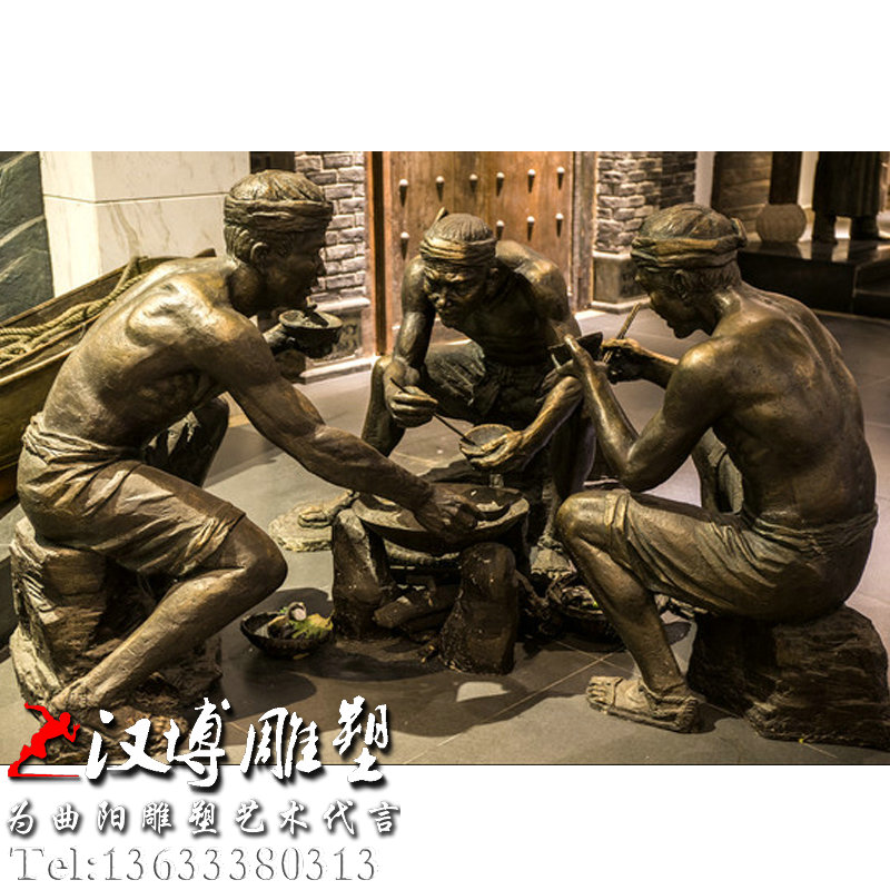 吃火锅人物雕像,传统文化雕塑,民俗小吃铜雕