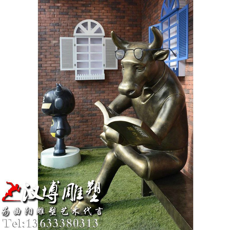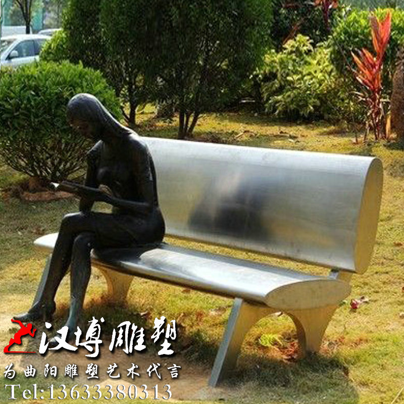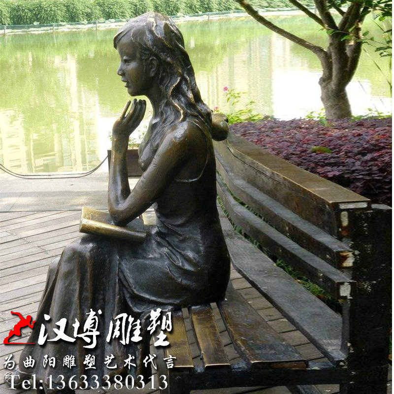 读书座椅雕塑,学习看书雕像,玻璃钢铜雕