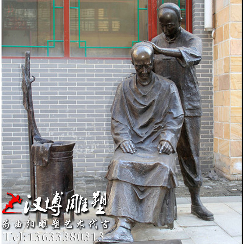 古代人物雕塑,剃头匠人物雕像,民俗文化铜雕