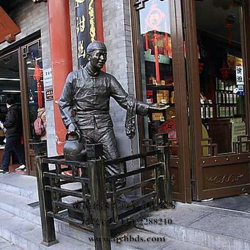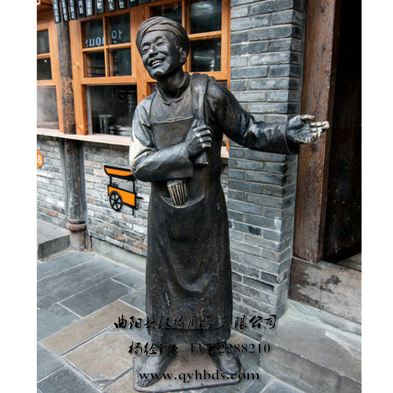 玻璃钢仿铜雕塑 小二迎宾人物雕塑 户外园林景观雕塑 酒吧
