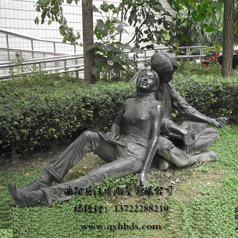玻璃钢铸铜雕塑 爱情主题雕塑 小学生爱情座椅雕塑