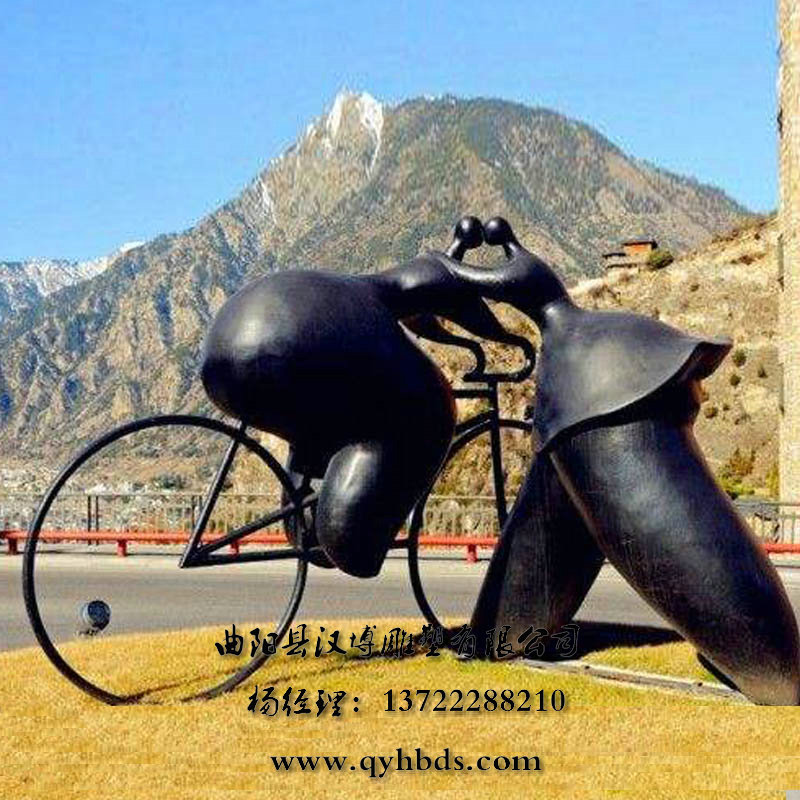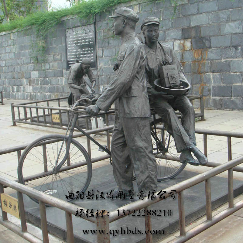 玻璃钢铸铜雕塑 革命同志骑车接新娘情景雕塑 爱情主题