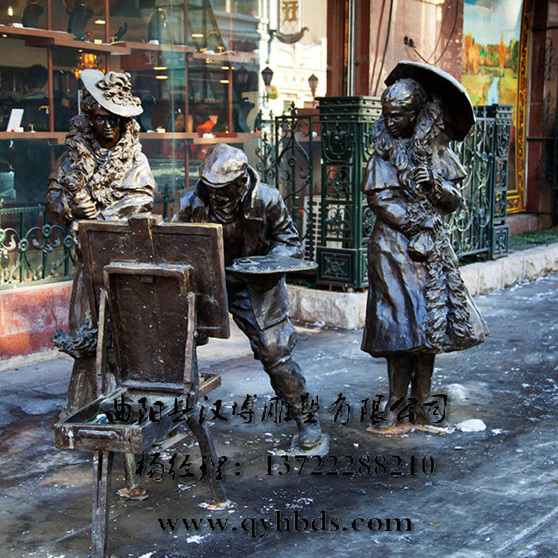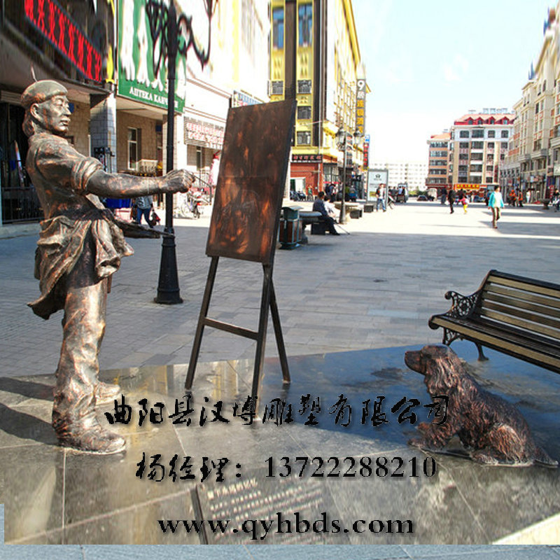 街头绘画写生雕塑 玻璃钢雕塑 画画人物铜雕 步行街公