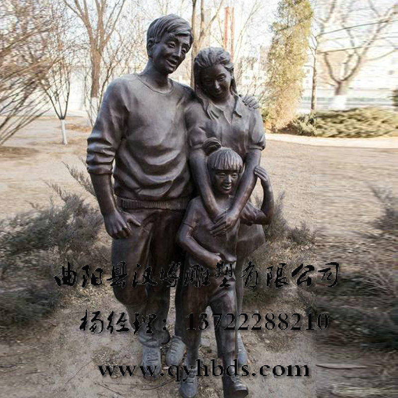 玻璃钢雕塑 亲情主题雕塑 一家三口人物雕塑 广场景观雕