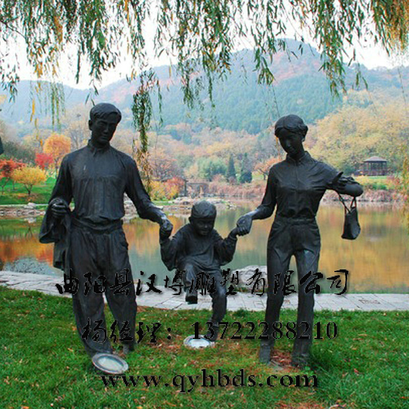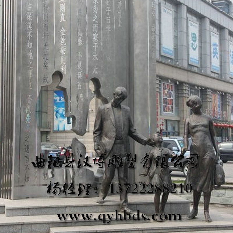 玻璃钢铸铜雕塑 亲情主题人物雕塑 一家三口雕塑 步行