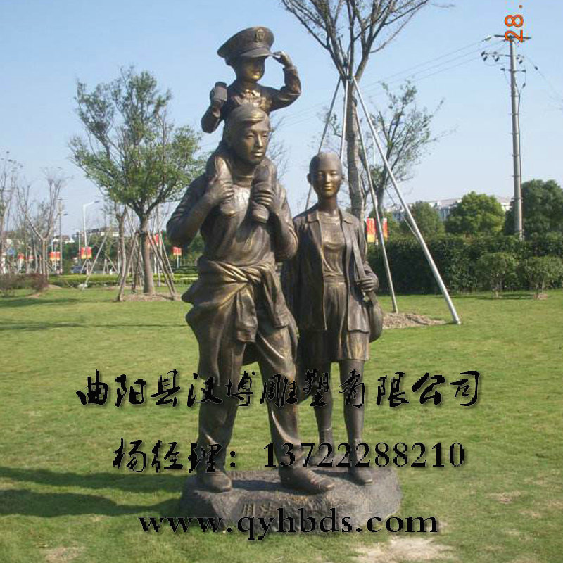 玻璃钢铸铜雕塑 少数民族人物雕塑 小孩玩耍雕塑 一家三