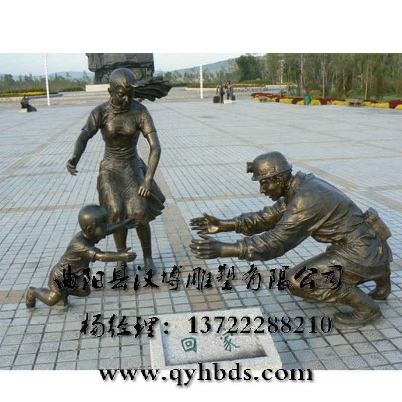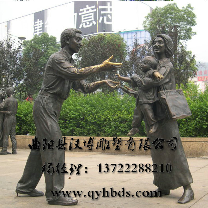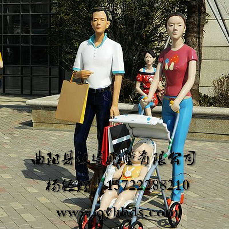 玻璃钢雕塑 一家三口回家主题雕塑 人物雕塑 户外广