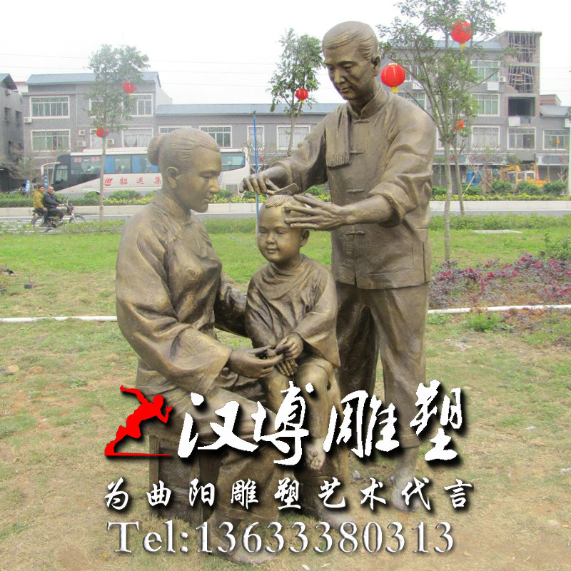 玻璃钢雕塑 给小孩剃头主题雕塑 人物雕塑 民俗小品雕塑