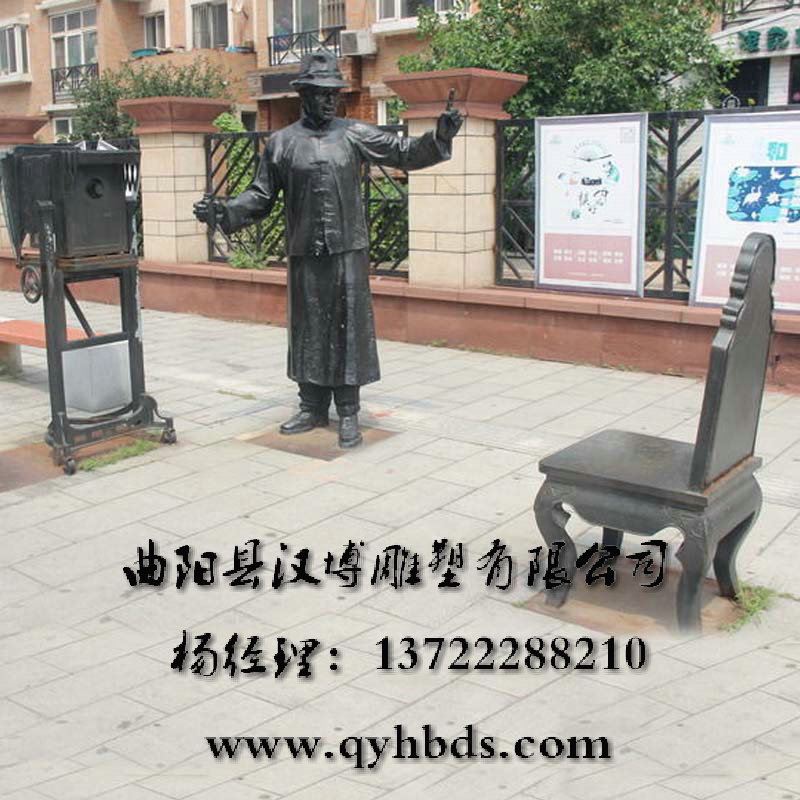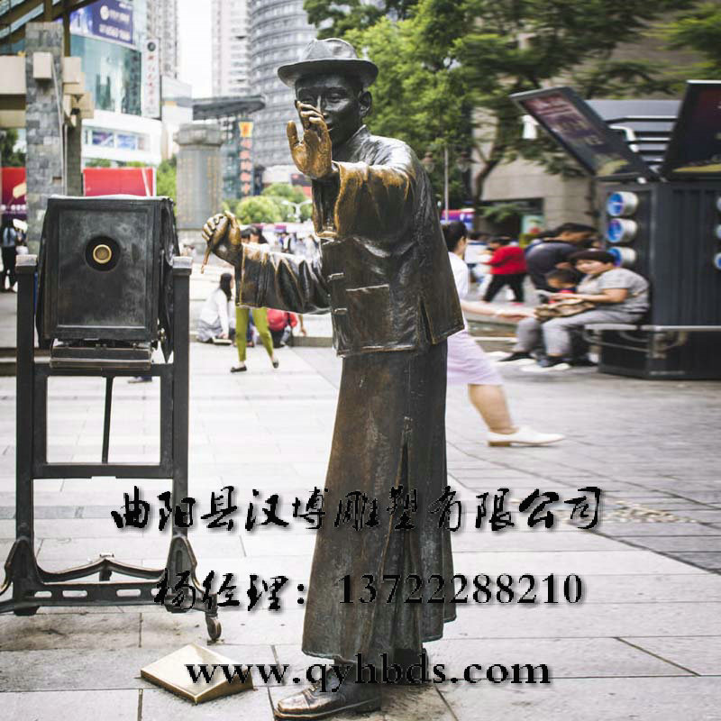玻璃钢仿铜雕塑 民国相机拍照雕塑 人物雕塑 户外广场景观