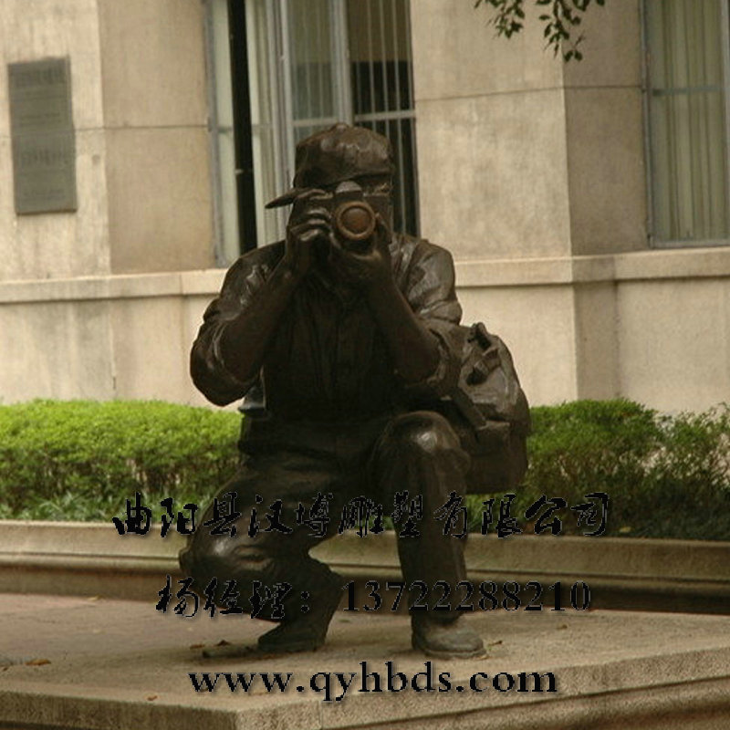 拍照姿势雕塑 玻璃钢仿铜雕塑 摄影师人物雕塑 户外景观广场