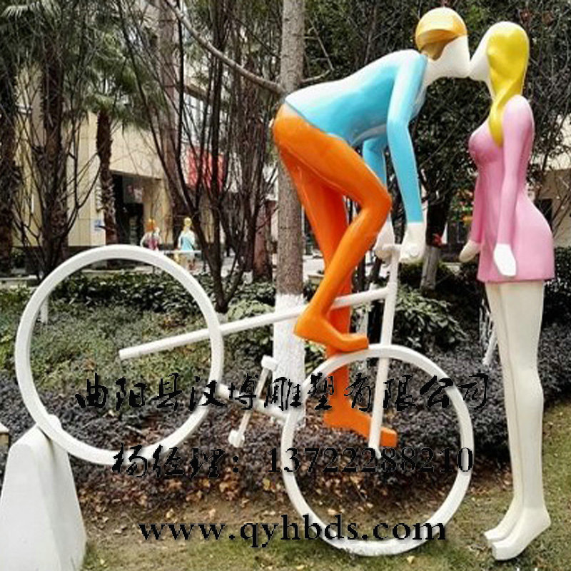 自行车接吻人物雕塑 玻璃钢彩绘雕塑 户外广场公园景观雕