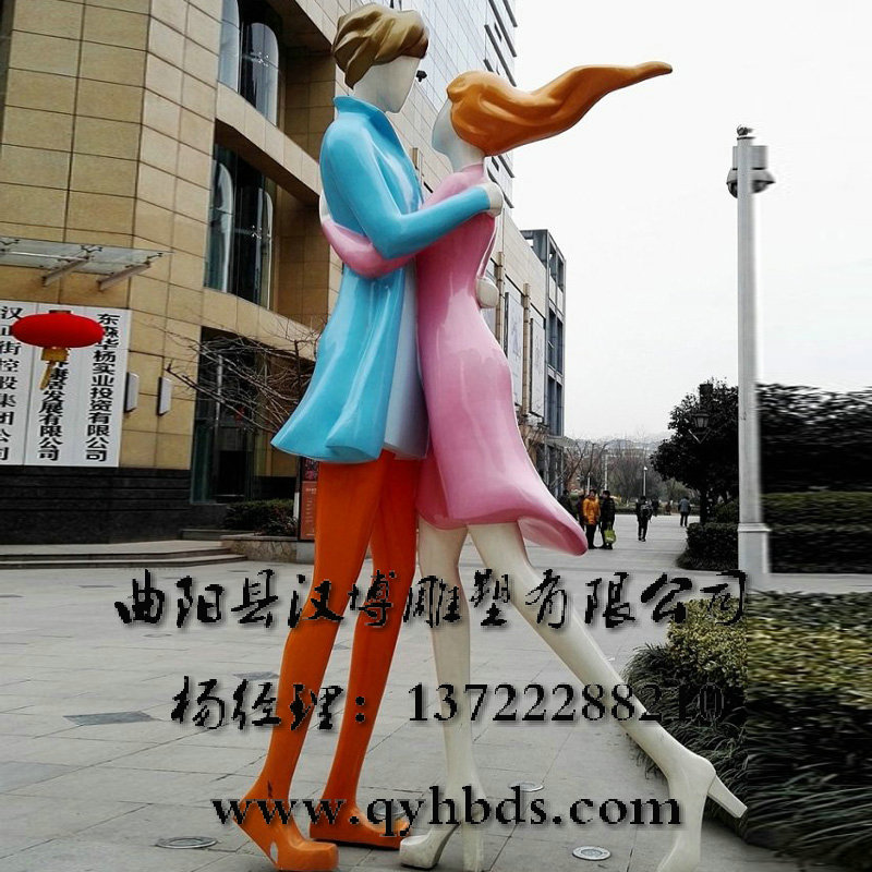 玻璃钢彩绘雕塑 拥抱人物雕塑 商业街步行街雕塑