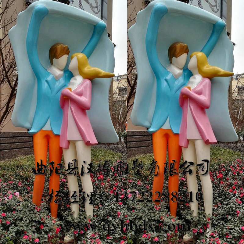 玻璃钢雕塑 情侣人物躲雨人物主题雕像 公园景观雕塑