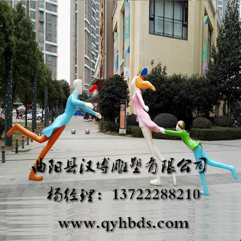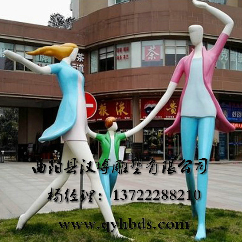 玻璃钢雕塑 一家三口人物雕塑 步行街景观雕塑