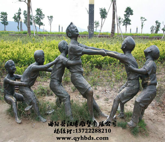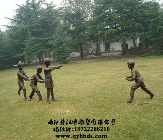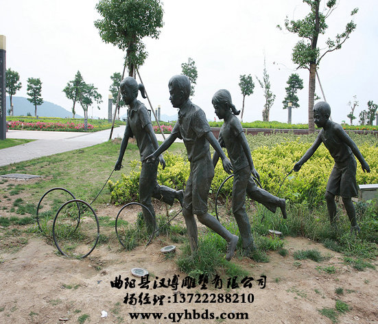 人物雕塑,小孩滚铁圈雕塑-ds764