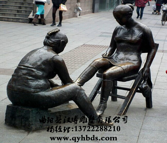 商业街雕塑,玻璃钢小品雕塑,擦皮鞋情景雕塑-ds065