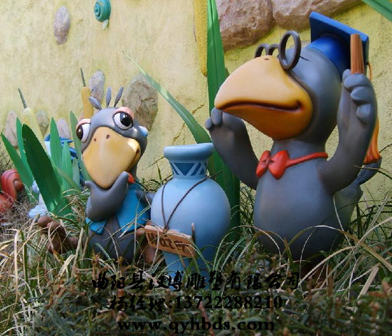 玻璃钢小品雕塑,卡通彩绘雕塑,乌鸦雕塑-ds071