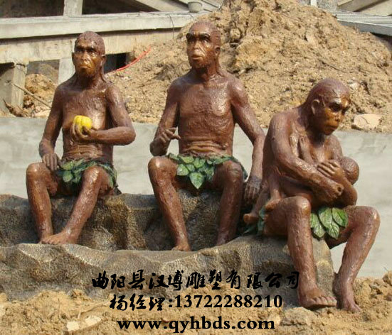 猿人雕塑,玻璃钢情景雕塑-ds062