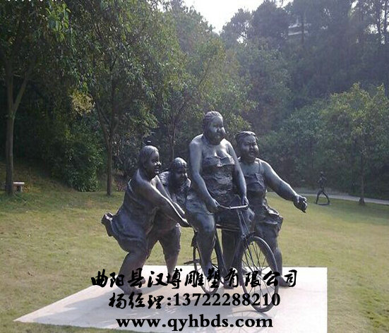 胖女人骑车雕塑,人物雕塑,玻璃钢情景雕塑-ds994
