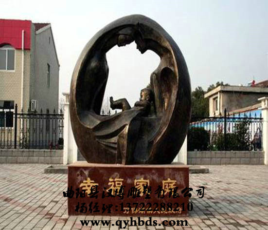 一家三口雕塑,计划生育主题雕塑,玻璃钢人物雕塑-ds811