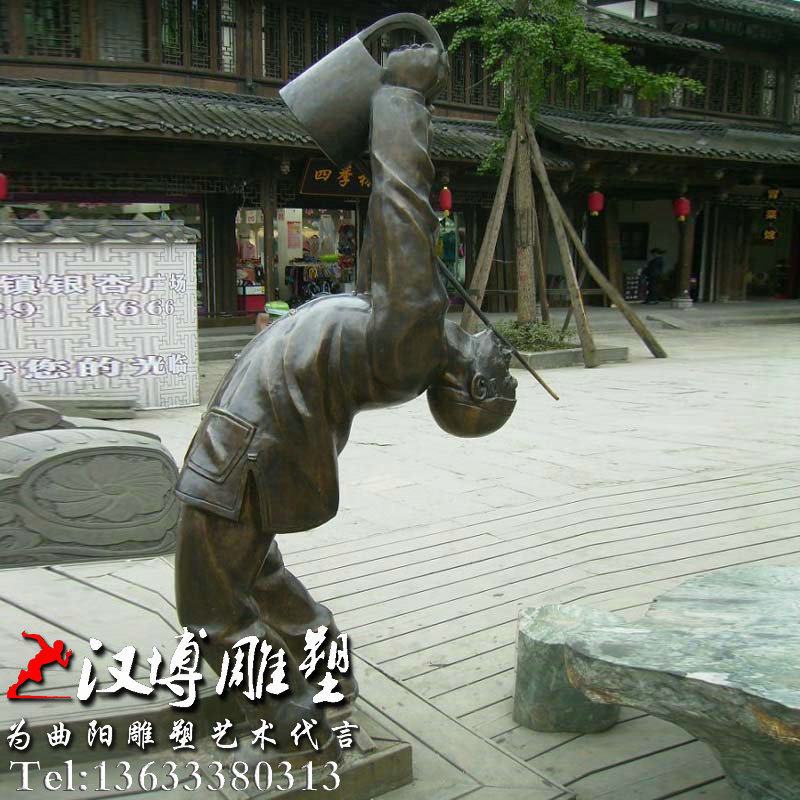 打锅盔雕塑,民俗传统铜雕,园林景观雕像