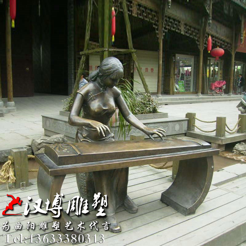 弹古筝人物雕塑,音乐人雕像,民俗传统铜雕