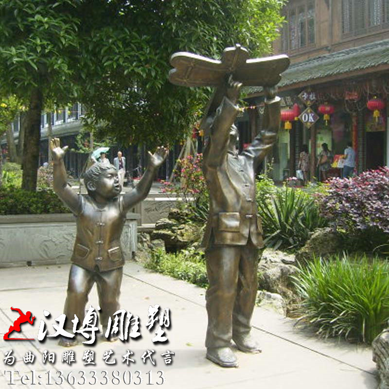 放风筝小孩雕塑,民族传统铜雕,园林景观雕像