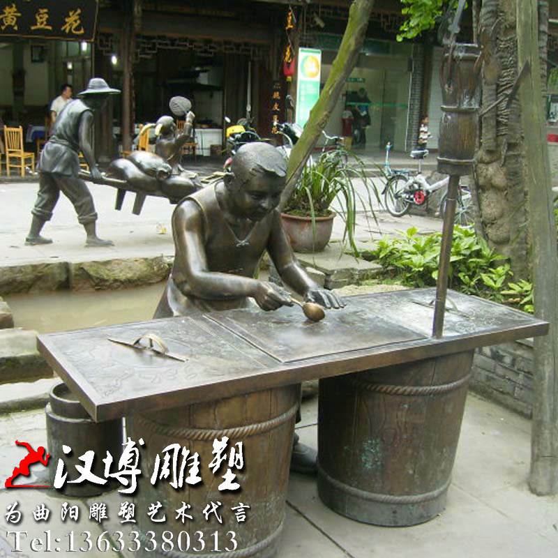 烙糖饼雕塑,民俗小吃雕像,传统文化铜雕