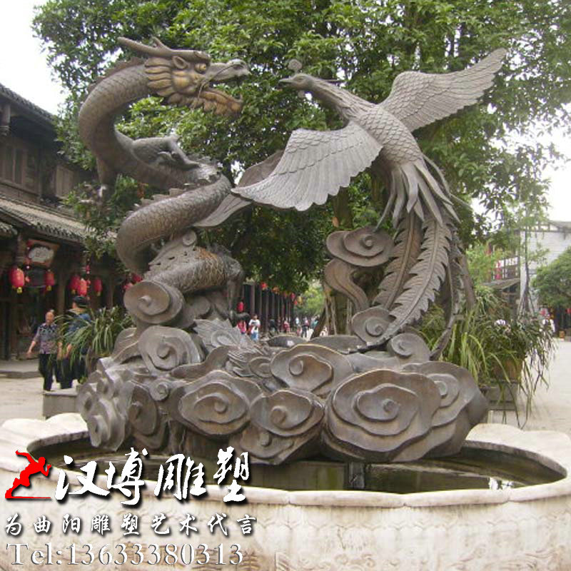 龙凤呈祥雕塑,神话动物雕像,玻璃钢铜雕