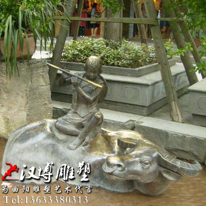 牧牛娃雕塑,童趣小孩雕像,传统民俗铜雕