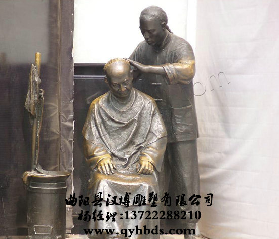 剃头雕塑,玻璃钢小品雕塑-ds175
